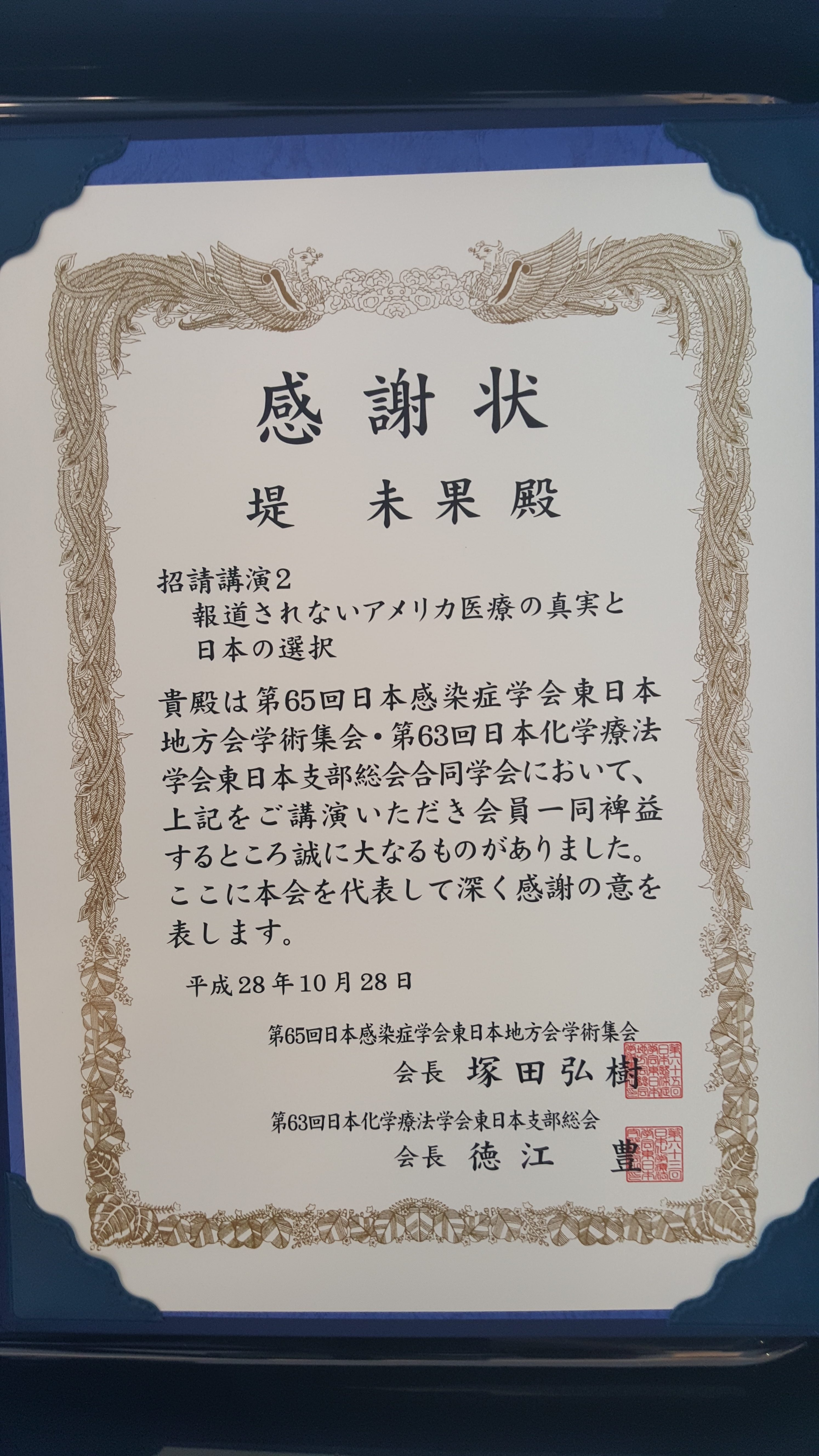 2016年1月の塩野義製薬での講演でご縁をいただいた、