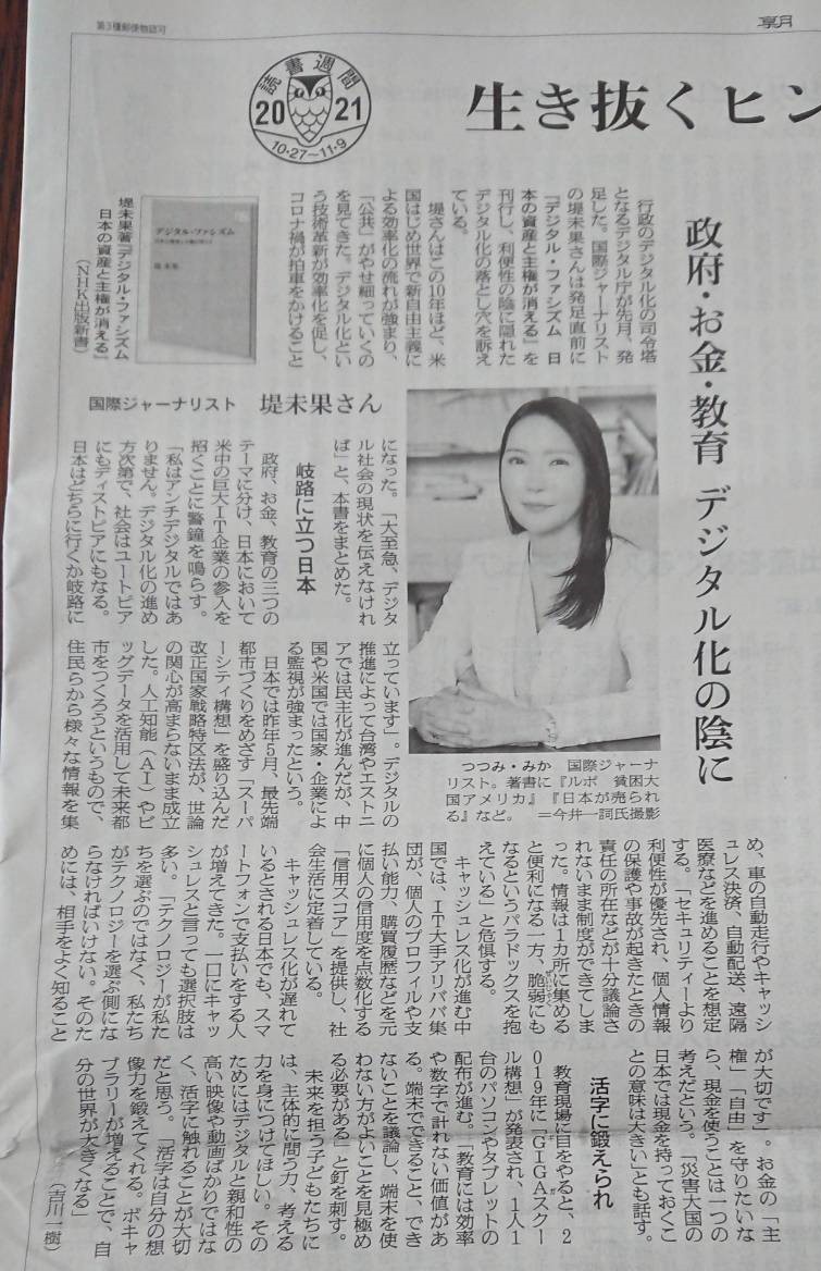 朝日新聞(10/23)で「デジタル・ファシズム」が紹介されました!