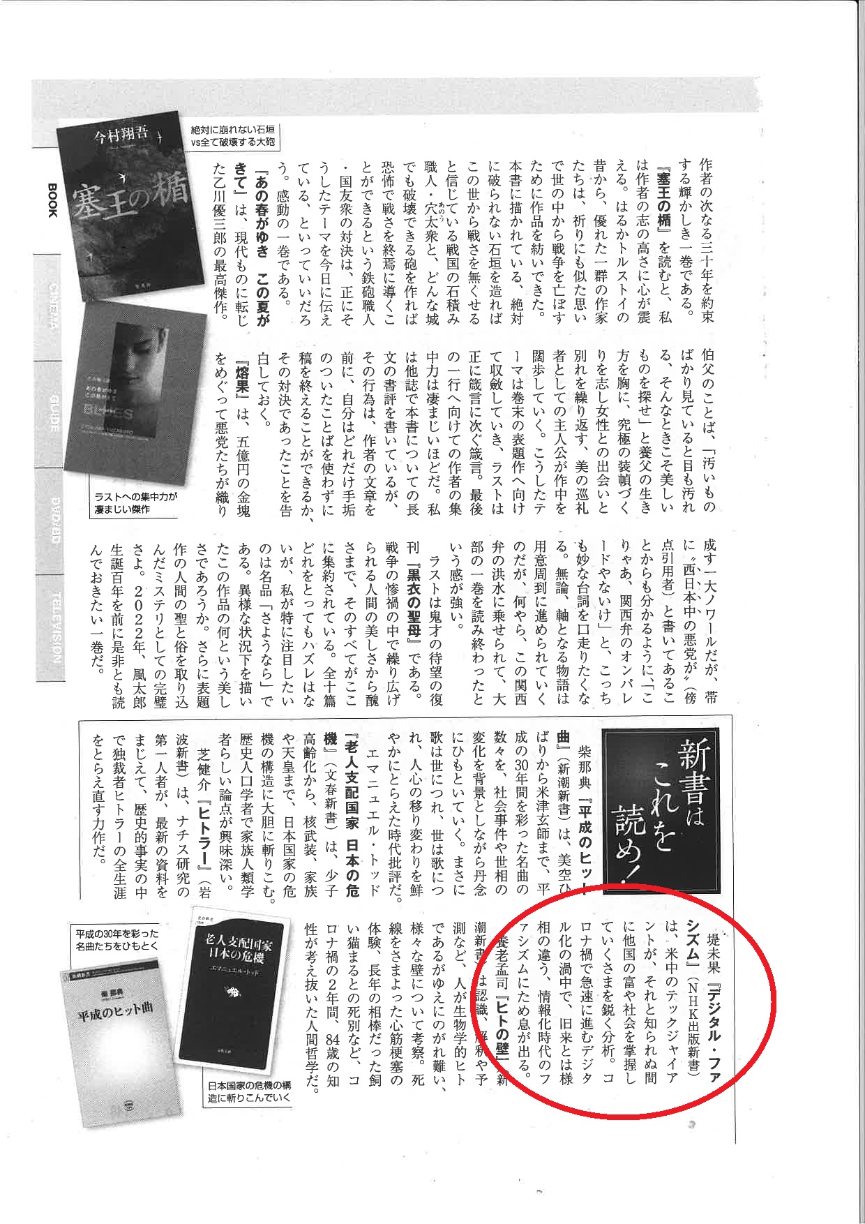 「週刊新潮」12/30・1/6特大号の書評「デジタル・ファシズム」がで紹介されました!