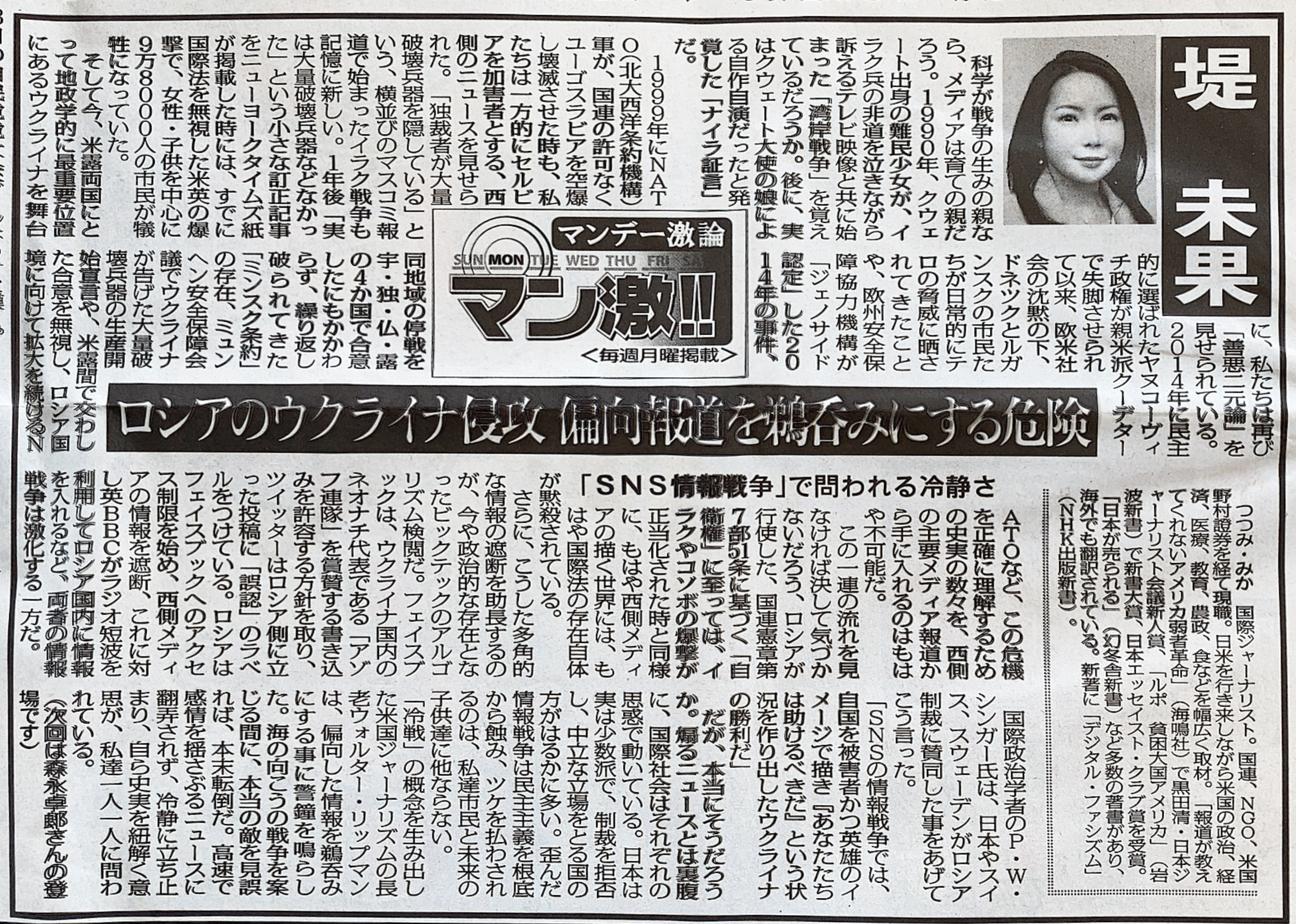 ロシアのウクライナ侵攻 偏向報道を鵜呑みにする危険:東京スポーツ・マンデー激論 2022/3/15の記事