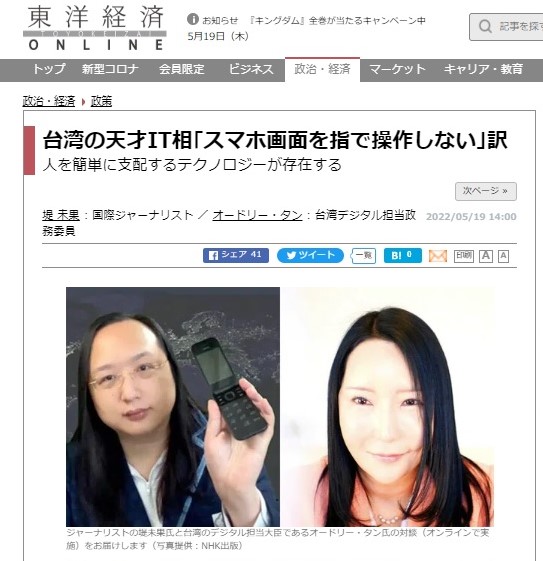 オードリー・タン氏との対談が「東洋経済」オンラインに掲載されました!全