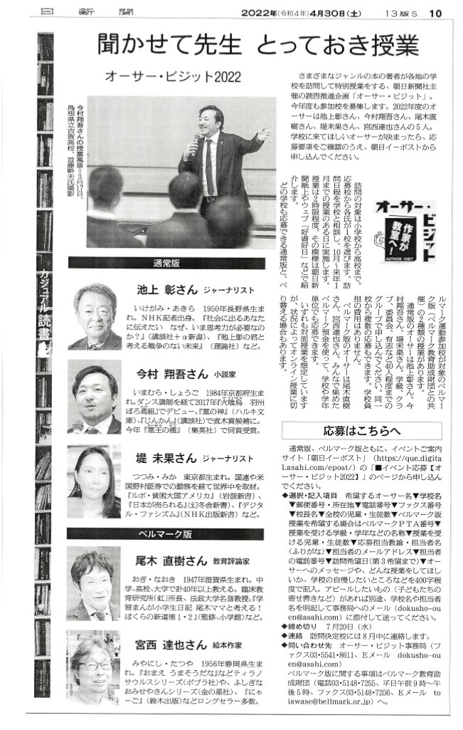 オーサー・ビジット2022(朝日新聞)参加校募集中!
