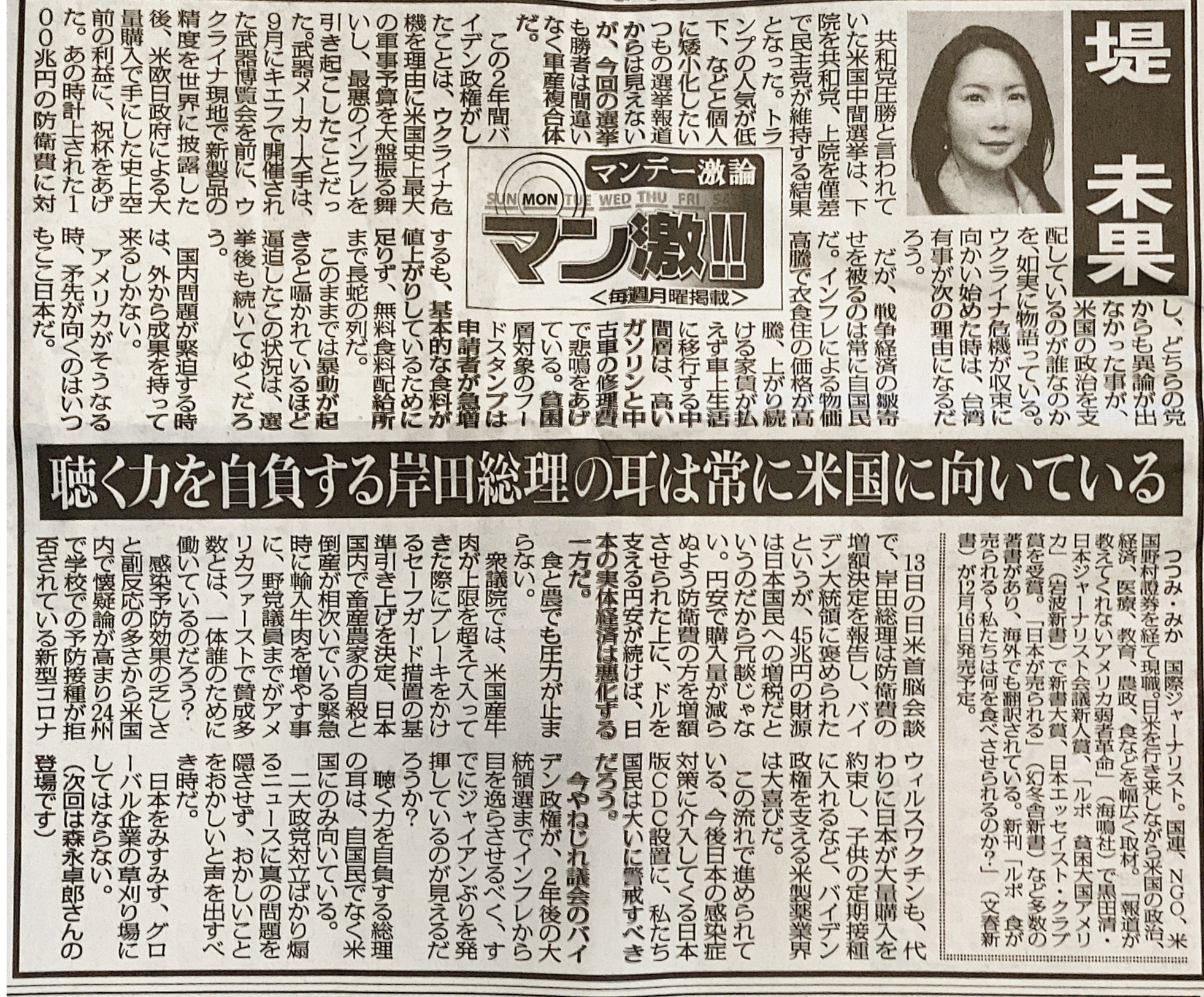 「聴く力を自負する岸田総理の耳は常に米国に向いている」東京スポーツ「マン激」 連載 2022年11月号